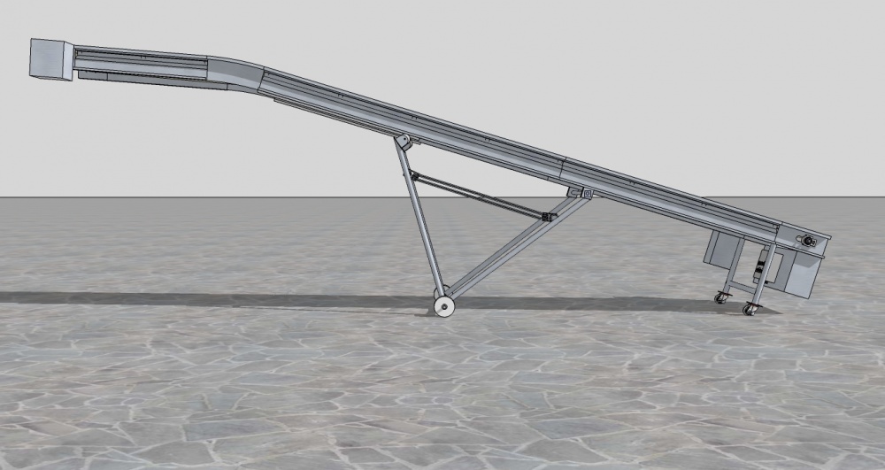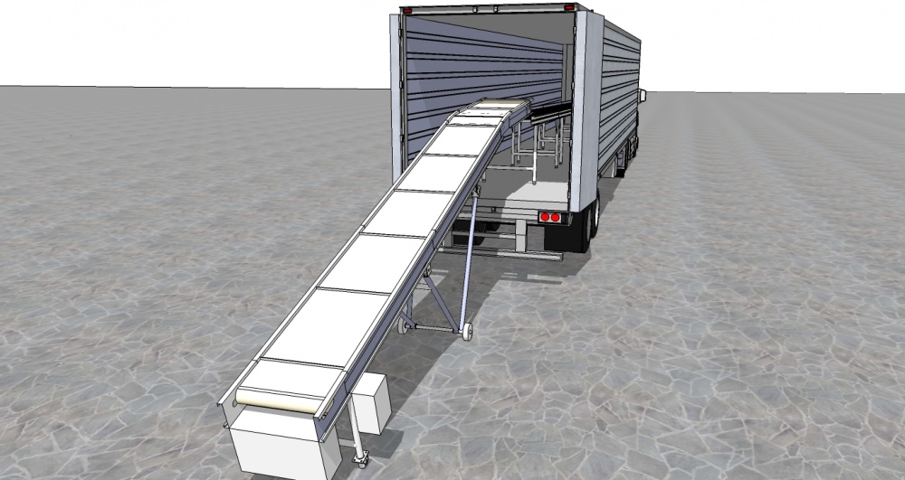 No processo de expedição, a esteira de carregamento auxilia na colocação do produto embalado no caminhão, com regulagem de variação de velocidade na esteira e na elevação do guincho.