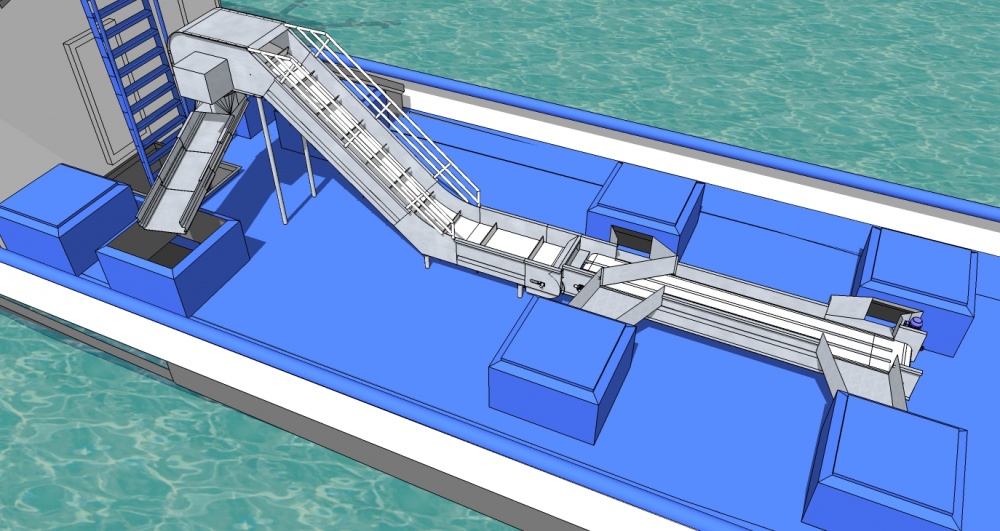 Função: Máquina transportadora e direcionadora para barco de pesca