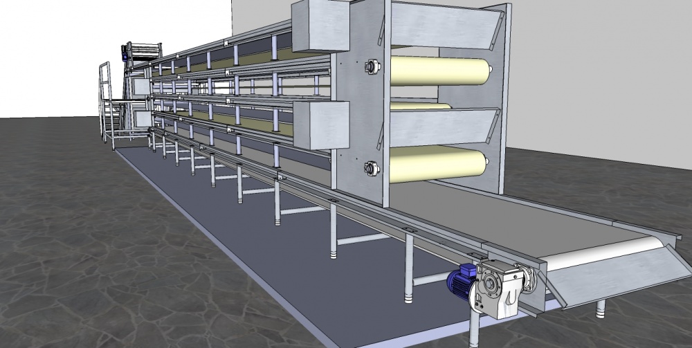 Acessórios : Moto-redutor elétrico trifásico, esteira transportadora de 5 andares, pés de regulagem