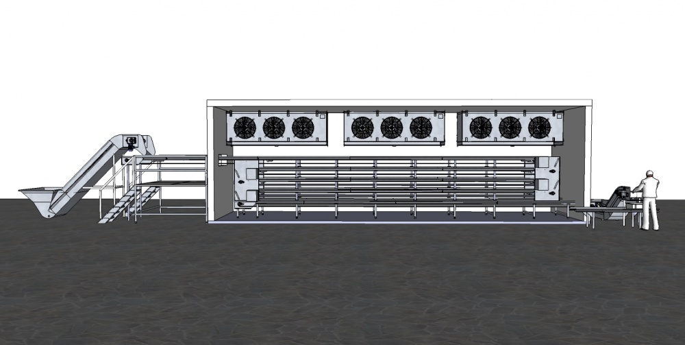 Dimensões : altura 2200mm x largura 1100mm x comprimento 15000mm , conforme projeto e dimensões do túnel de congelamento