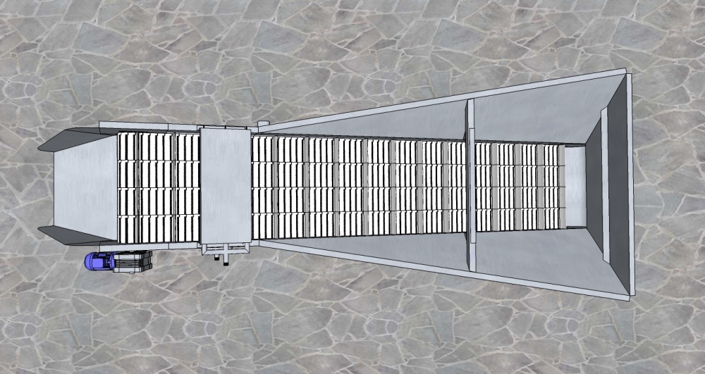 No processo de recepção, o pescado chega misturado com o gelo, em seguida é direcionado para o tanque com água da máquina separadora, com esteira contínua e taliscas, faz a separação do gelo e o transporte do produto para as linhas de processamento.
