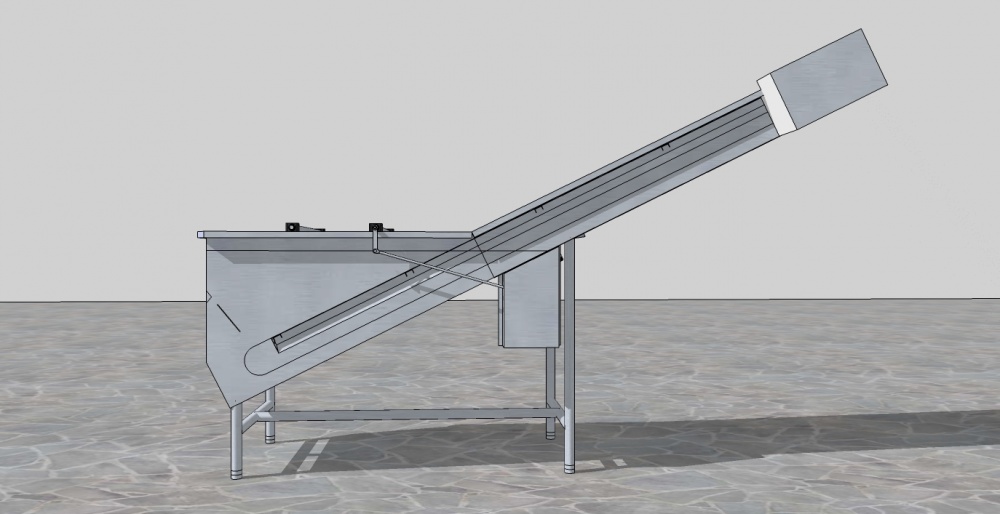 Acessórios : Moto-redutor elétrico trifásico, tanque água gelada, agitadores tipo pás , esteira transportadora, pés de regulagem